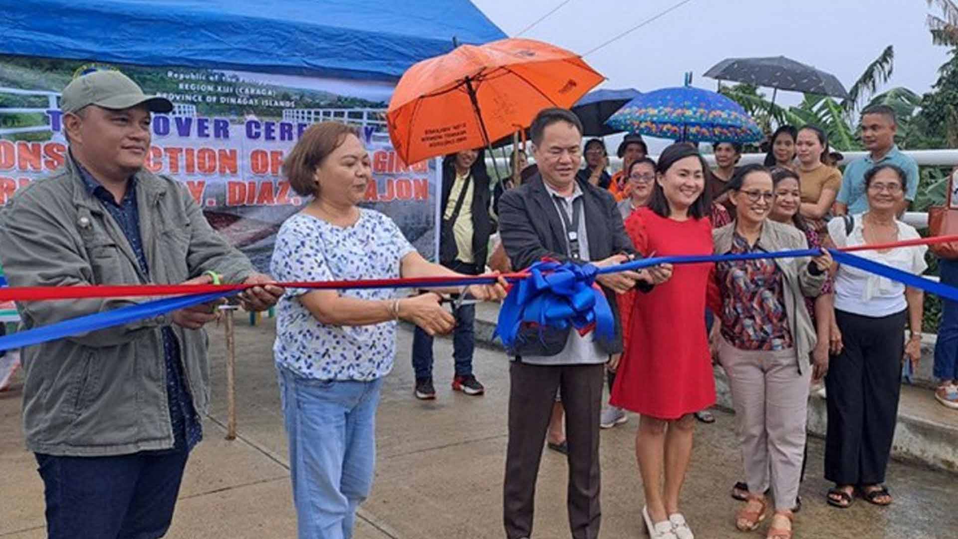The completed projects, turned over on Thursday, include the Mabuhay to Bagumbayan Road project worth PHP3,988,264.75 in Dinagat town, PHP4.9-million Poblacion Access Road and the PHP2.8-million Reinforced Concrete Box Culvert in Barangay Tigbao, all in Cagdianao town.
