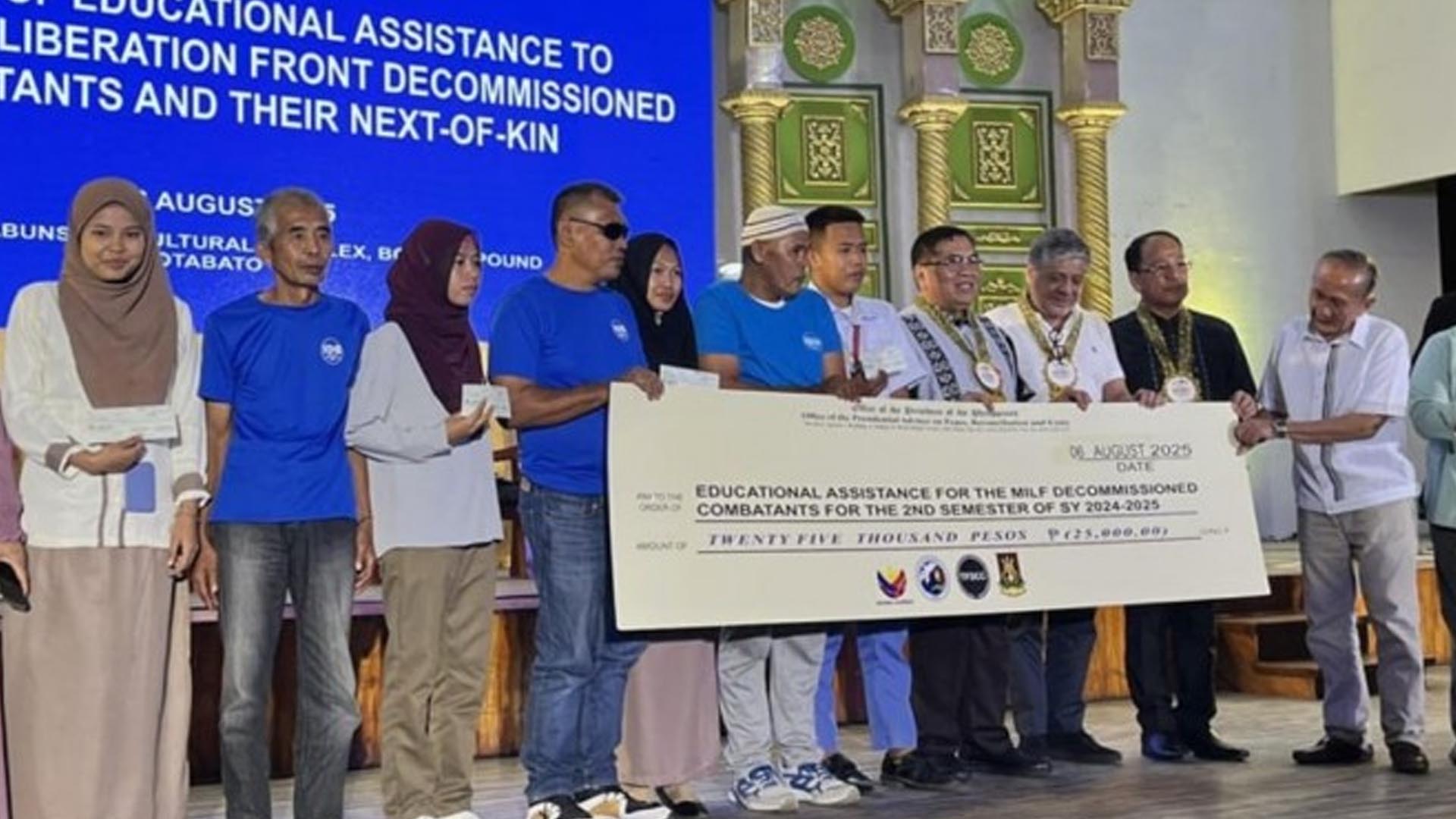Each beneficiary received PHP25,000 in cash assistance under the Education Assistance Program (EAP). They are among 900 students benefiting from the education fund for the school year 2024–2025, according to the Office of the Presidential Adviser on Peace, Reconciliation, and Unity (OPAPRU).