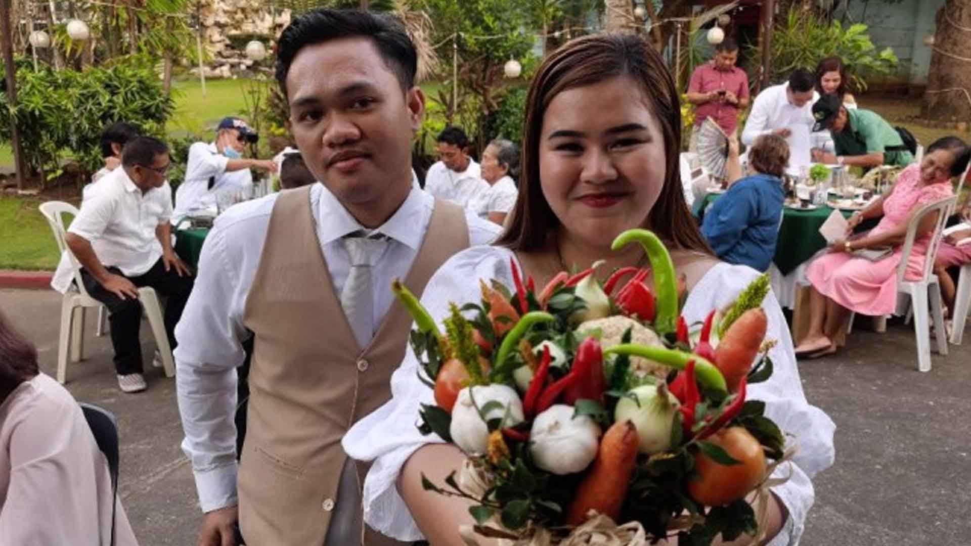 “They are just being practical with their unique flower bouquet composed of mixed vegetables, including the highly-priced ‘sibuyas’ (onion), instead of real expensive flower arrangement that will just go into trash after the celebration,” said Mayor Denver Reyes Chua, who officiated the wedding.