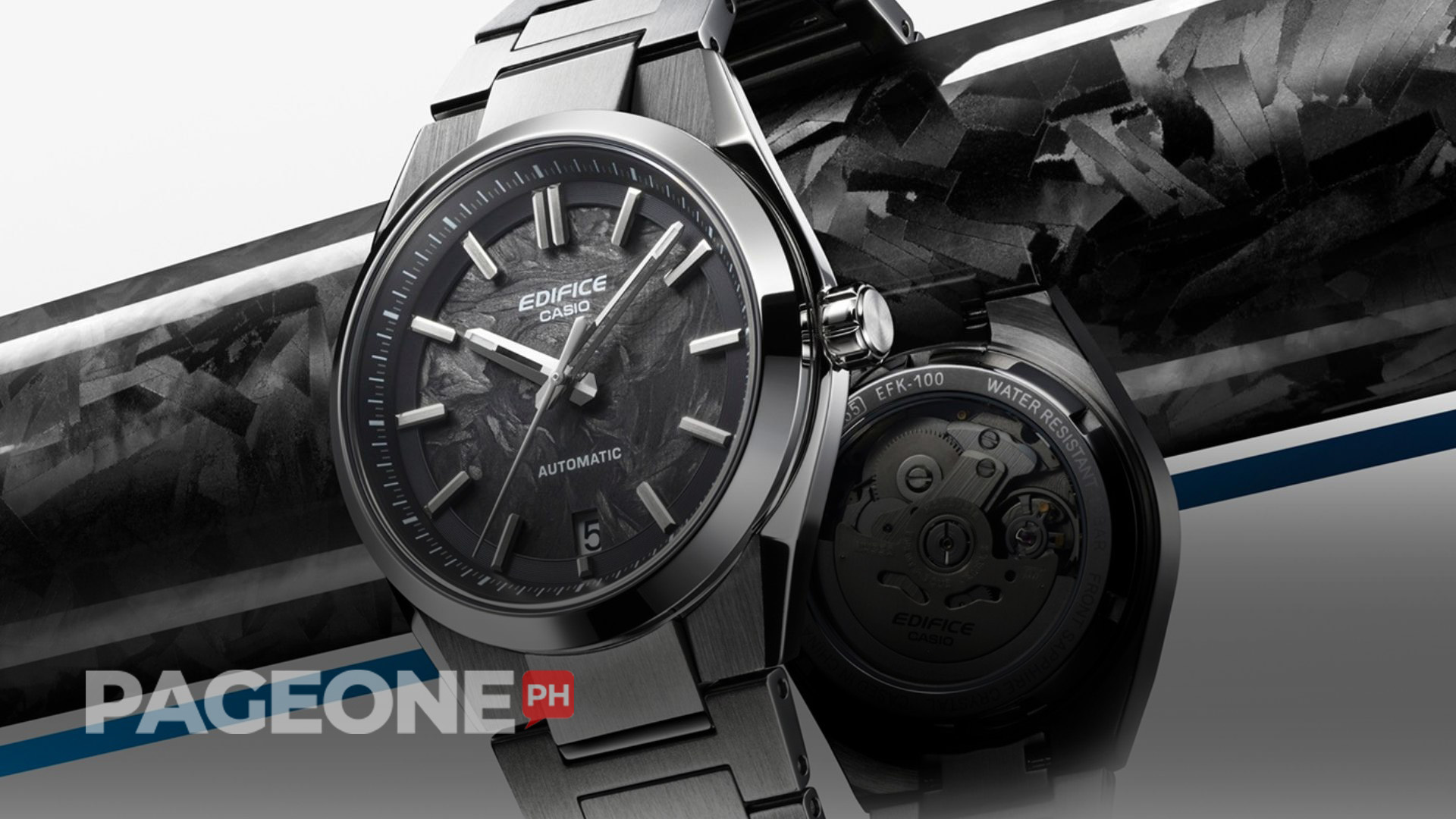 Casio Computer Co., Ltd. recently announced the release of the latest addition to the EDIFICE line of timepieces based on the brand concept of “Speed & Intelligence.” The new EFK-100CD is a mechanical watch that, for the first time on the EDIFICE line, incorporates forged carbon — a material renowned for its strength and lightweight properties.