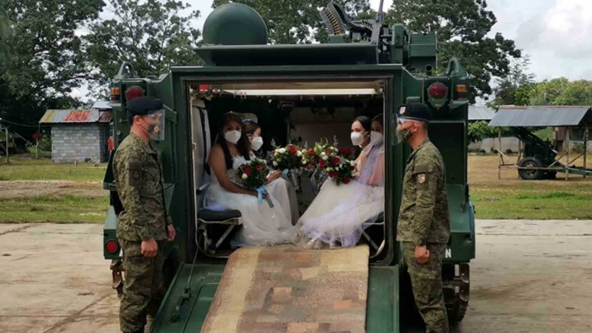 Three years after the five-month siege in Marawi City in 2017, the armored personnel carrier (APC) of the Armed Forces of the Philippines (AFP) was back running, not to carry soldiers in full-battle gear, but to carry six white-clad brides to marry soldiers who were part of the war against terrorists.