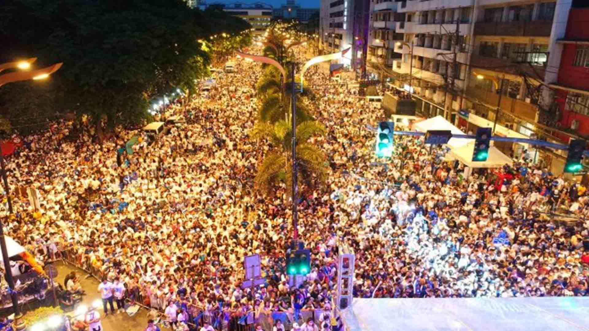 His camp held back-to-back concert-rallies in Lapu-Lapu City on Friday, with about 35,000 trooping to the Mactan Shrine, followed by a free concert at Toledo City Sports Center parking lot the following day, attended by about 20,000.