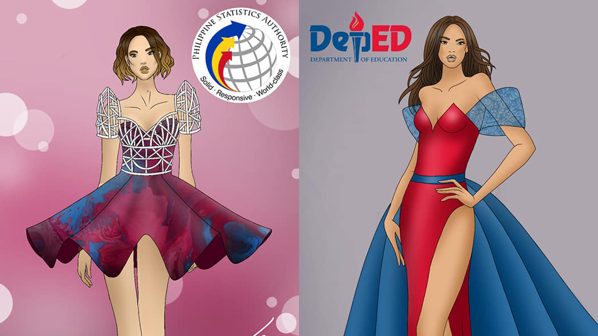 First up is Land Transportation Office (LTO) donning an off-shoulder blue-violet gradient piece.