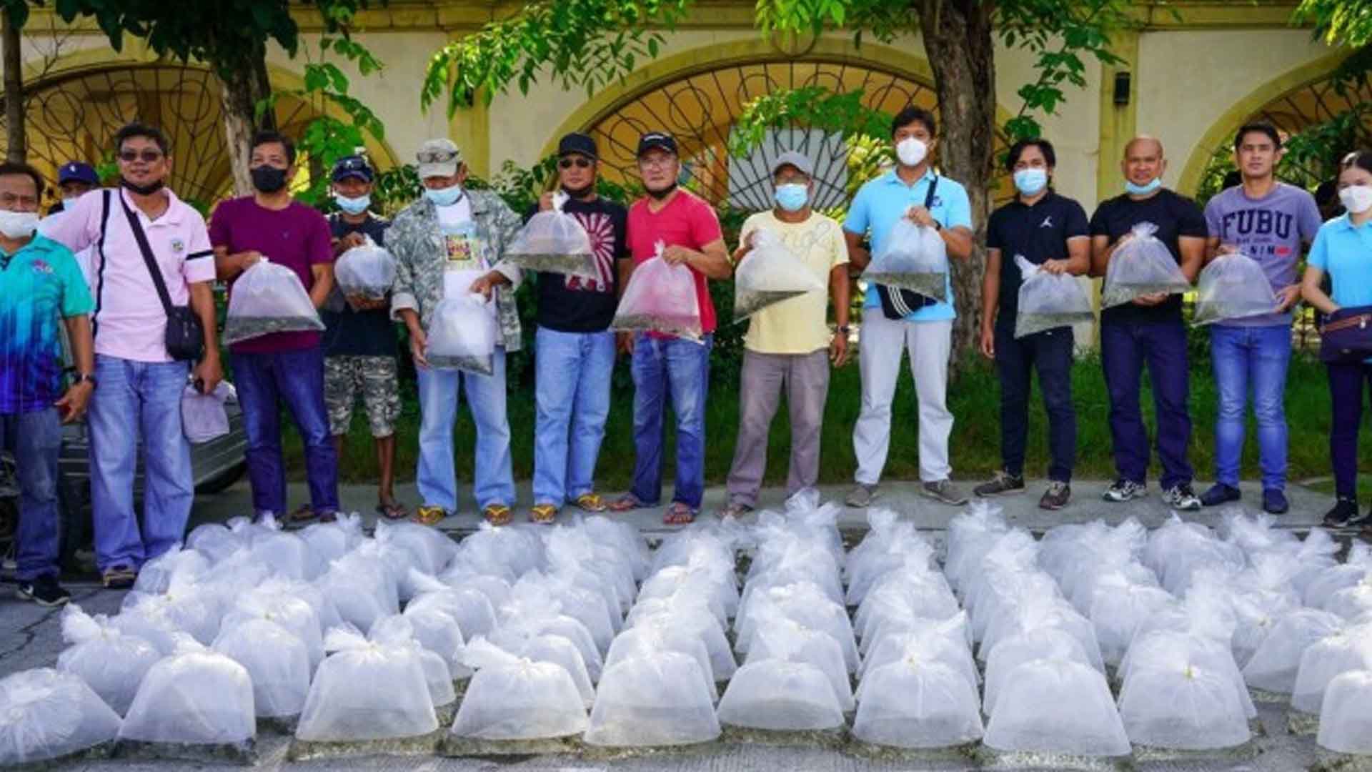 Recipients of the tilapia fingerlings were eight fish pond operators here.