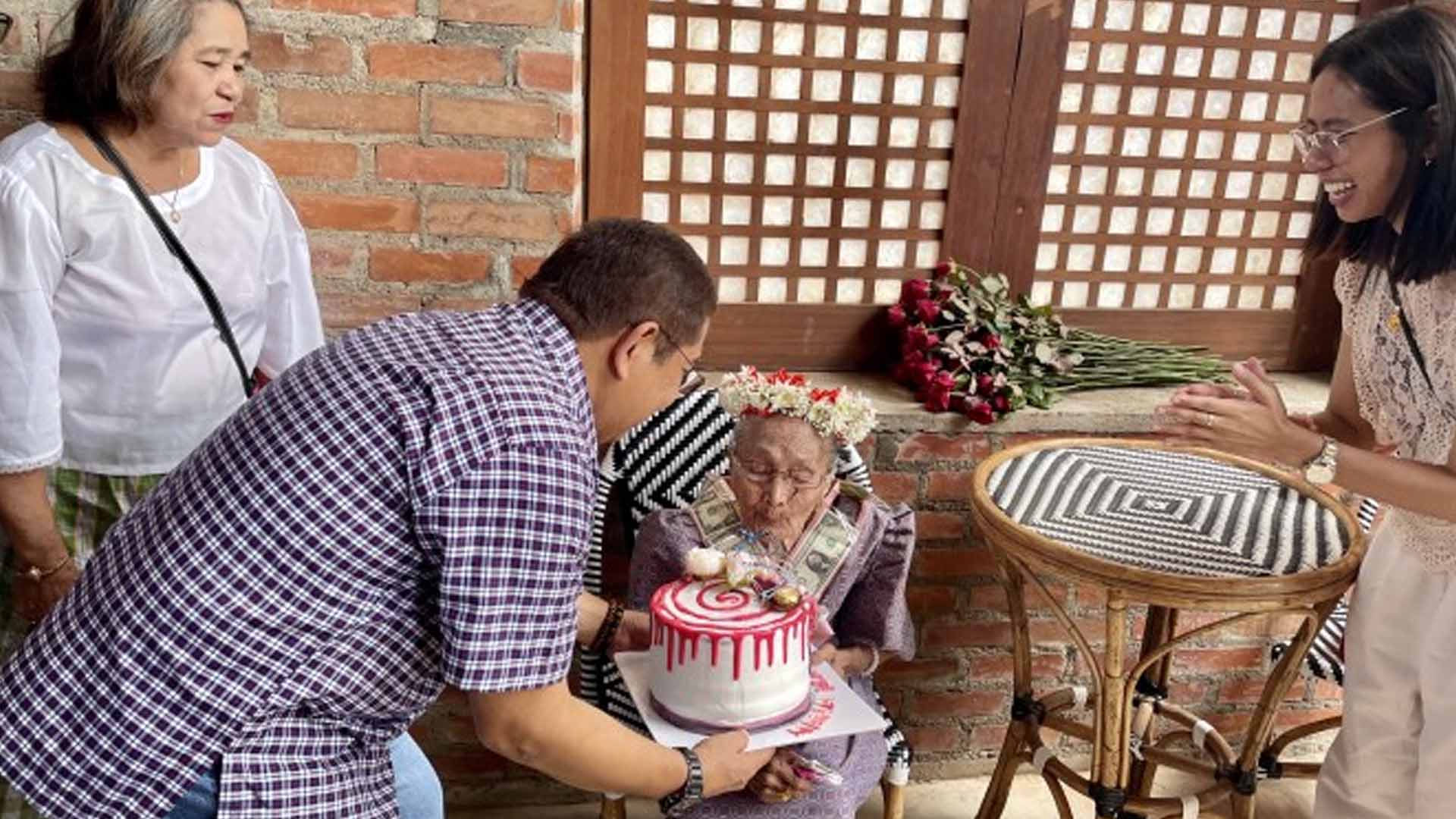 Rep. Angelo Marcos Barba of the Second District of Ilocos Norte greeted Gamayo, who is popularly called Nana Dalen, with a bouquet of flowers.